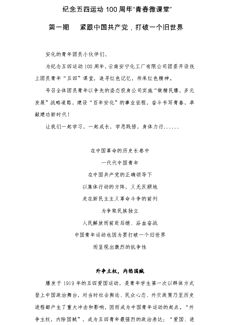 紀(jì)念五四運(yùn)動(dòng)100周年“青春微課堂”