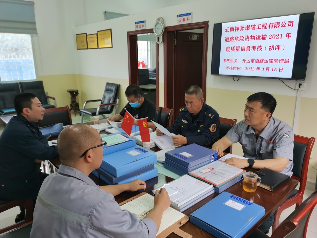 2022年3月15日,開遠(yuǎn)市道路運(yùn)輸管理局對云南神斧爆破工程有限公司進(jìn)行2021年度質(zhì)量信譽(yù)考核現(xiàn)場考評。本次年度質(zhì)量信譽(yù)考核是云南神斧爆破工程有限公司取得道路運(yùn)輸經(jīng)營許可后的第一次考核。
