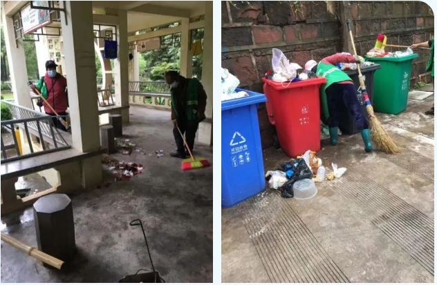 疫情雖然限制了住戶們的腳步,但保潔人員的工作依然在有條不紊地開(kāi)展著。臨時(shí)靜態(tài)管控期間,僅有的5名保潔人員每天都對(duì)安化生活區(qū)環(huán)境衛(wèi)生打掃、公共區(qū)域消殺,竭力為安化生活區(qū)的住戶們提供一個(gè)良好的生活環(huán)境。