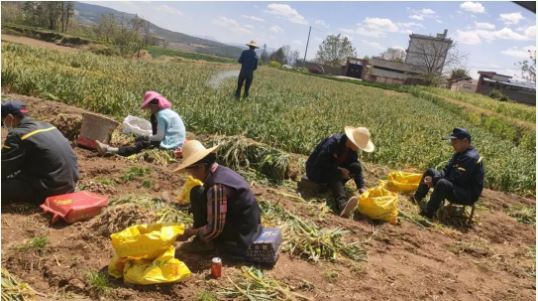大理分公司黨支部9名黨員及5名共青團(tuán)團(tuán)員分為三組,分別幫助3戶農(nóng)戶搶收大蒜。參與活動(dòng)的黨員、團(tuán)員冒著炎炎烈日,整整勞作了八個(gè)半小時(shí),其間,組與組之間自發(fā)地搞起了“勞動(dòng)競(jìng)賽”,田間地頭充滿了濃濃的勞動(dòng)氛圍。通過(guò)大家的辛勤勞作,幫助農(nóng)戶搶收大蒜650多公斤。